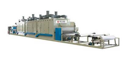 用途:為了適應(yīng)不同的作業(yè)環(huán)境,對基材進(jìn)行浸漬,使其具備不同的物性。 特征:將基材在浸料槽中浸染后初步軋干,再經(jīng)烘箱烘干。 |